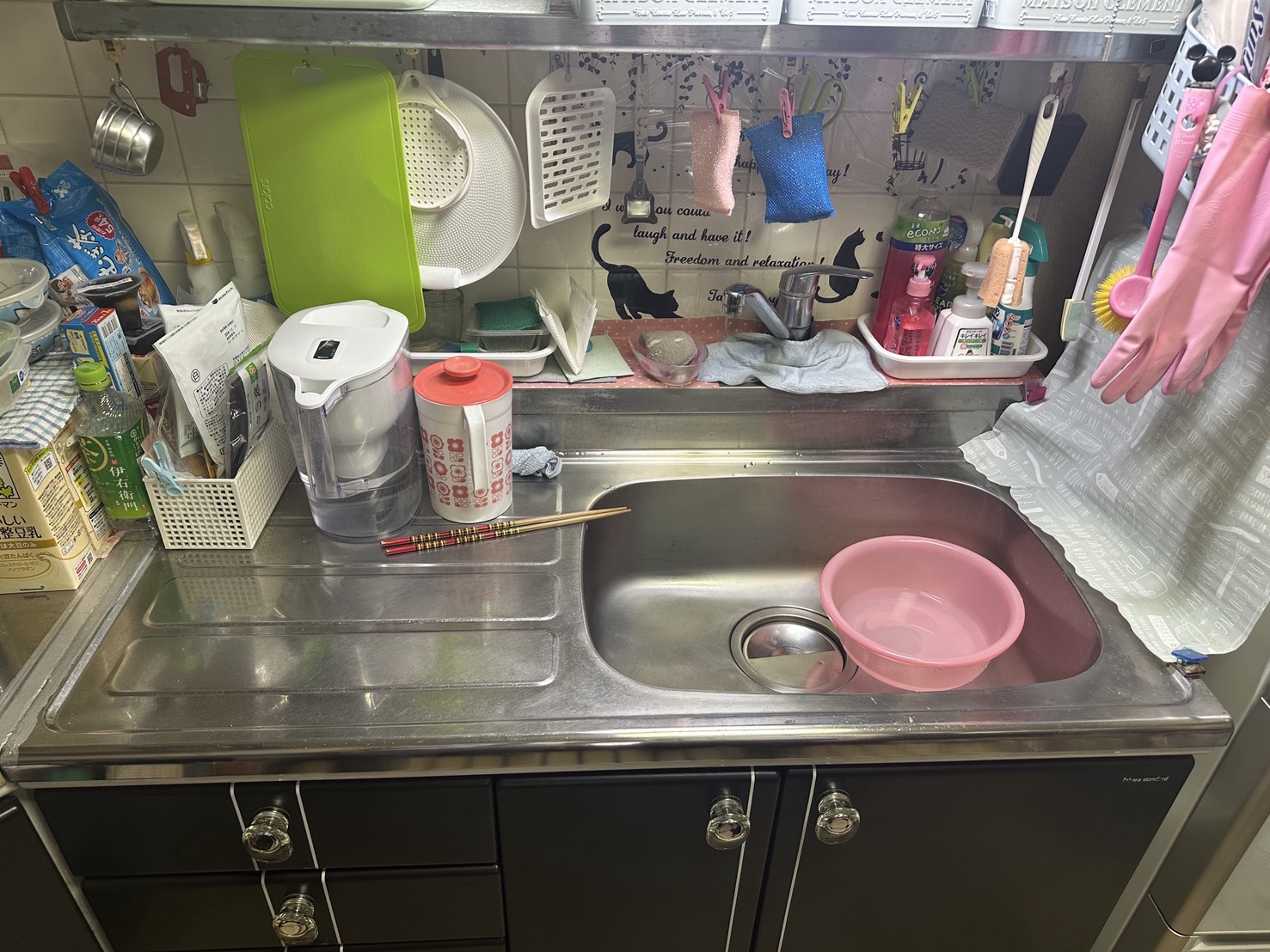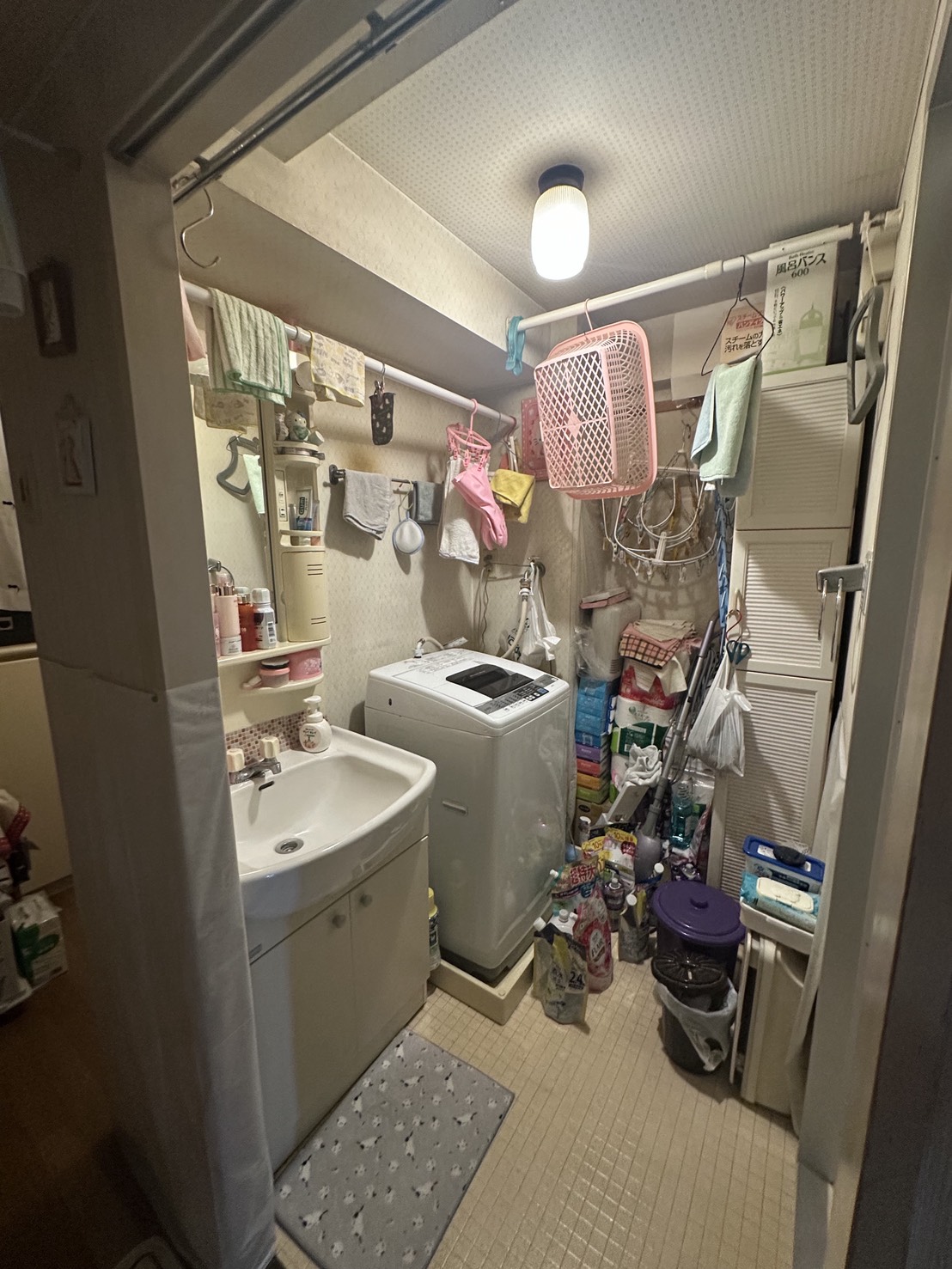 キッチンや脱衣所に棚など収納があると、余計なものを置いて散らかってしまうのが悩み。