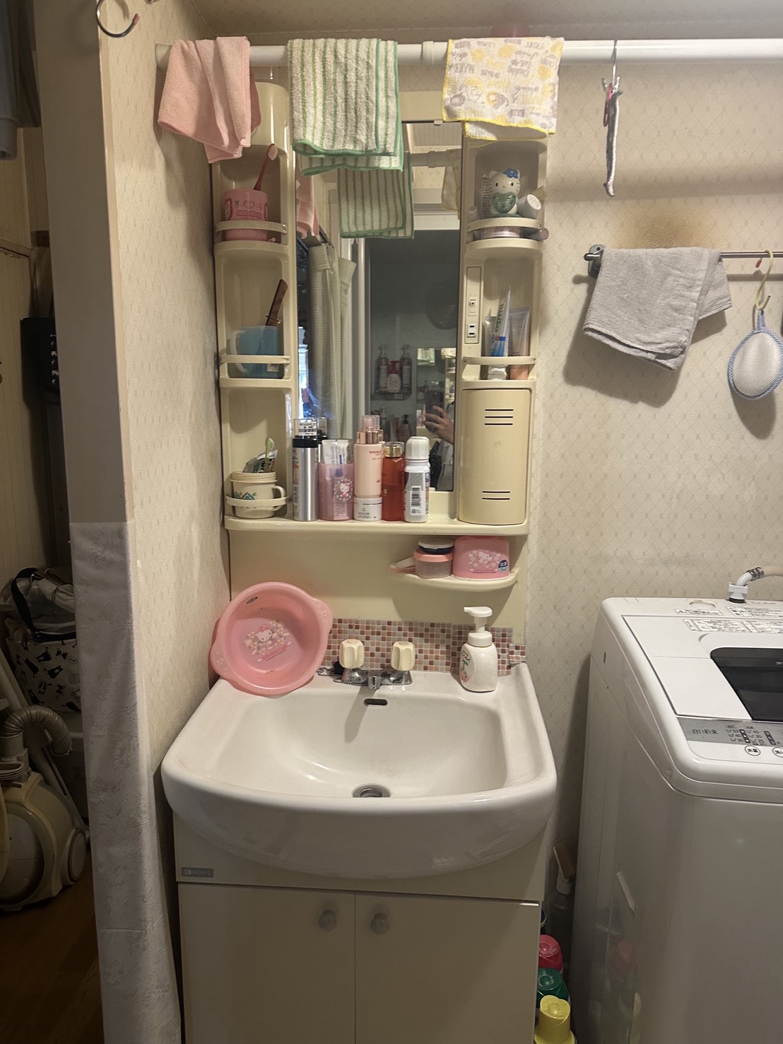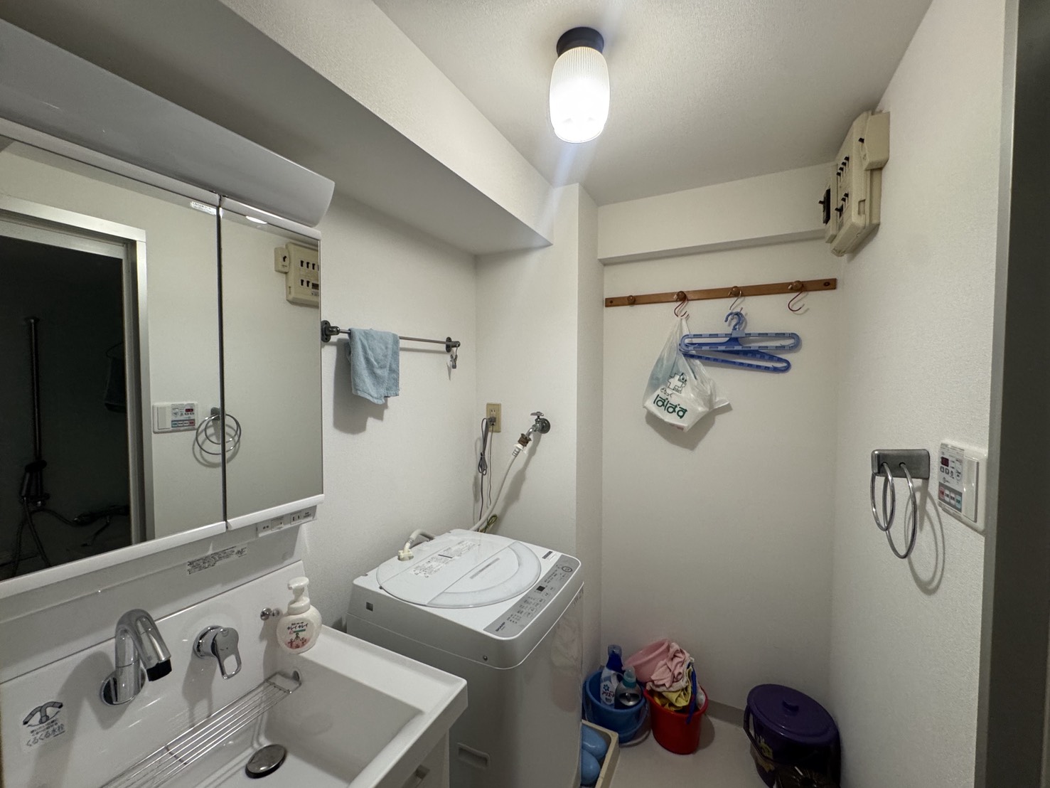 洗面台も二面鏡にして、物を中に収納出来るようにしました!